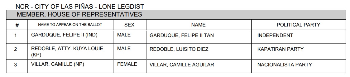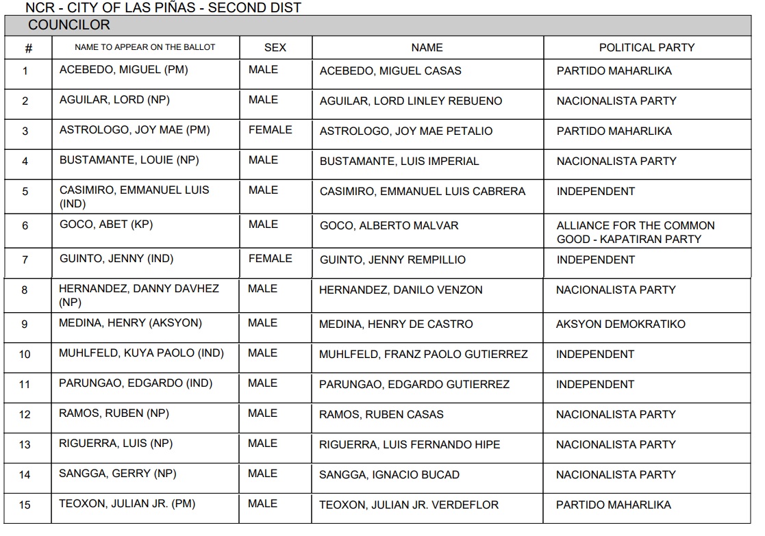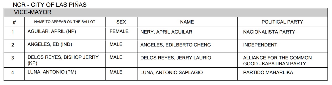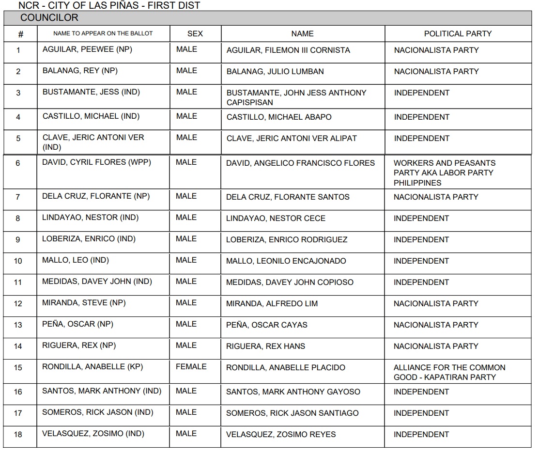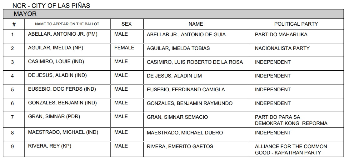 2022 Las Piñas local elections candidates