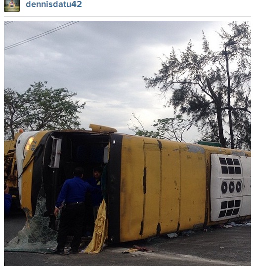 “Normal naman ang takbo ng bus, tapos biglang naputol iyung gulong niya sa likuran so nag-turn turtle siya, iyung katabi ko nga naputol ang kamay niya,” Lagrimas told dzMM. “Ako nasa gitnang upuan kaya medyo galos lang,” he added.