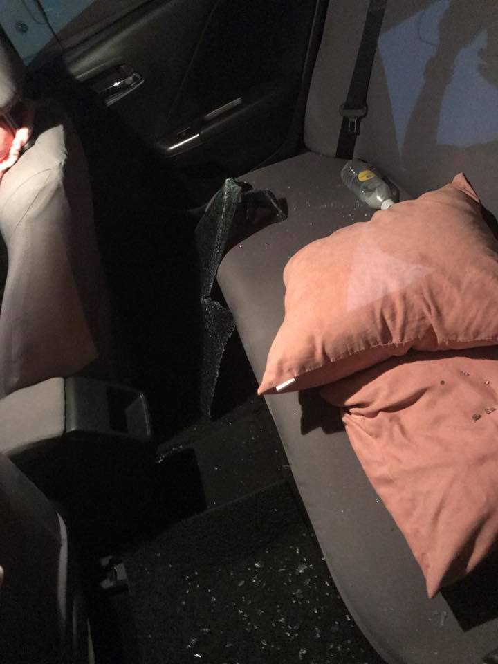 In a Facebook post last Sept. 9, Rena Toleda posted photos of her car with the broken window.