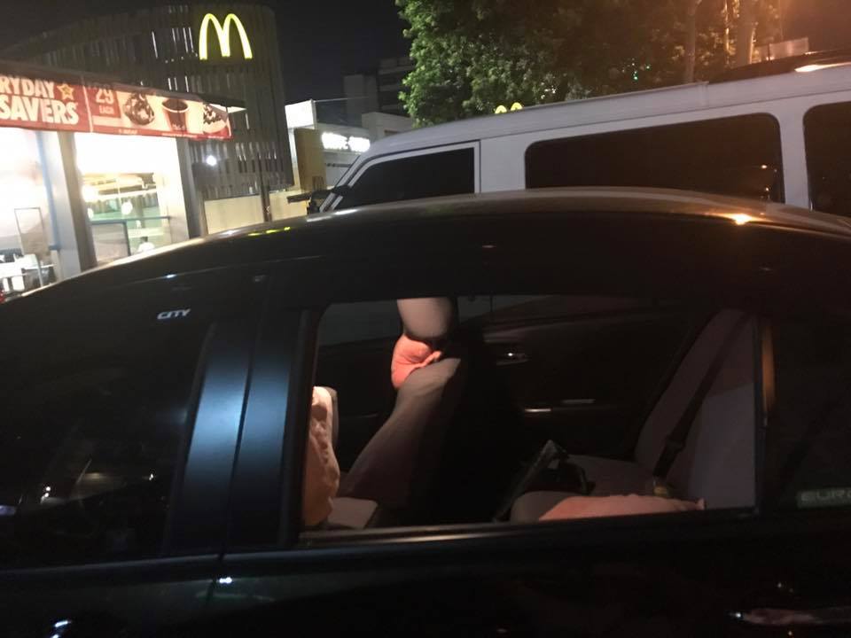 In her post, she said that she just parked her car in a fastfood chain in Las Pinas when she suddenly discovered what happened.