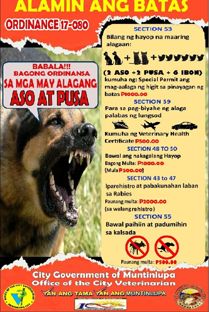 For more information, you may contact the Muntinlupa Office of the City Veterinarian on Facebook.