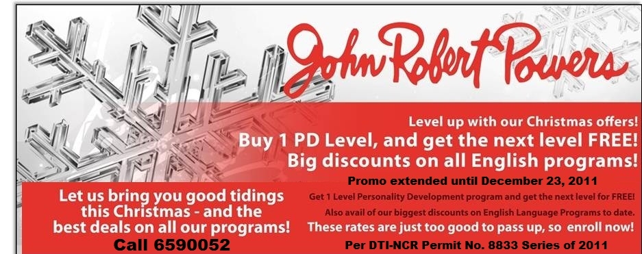 Avail of the John Robert Powers Christmas discount now! by AlabangBulletin · December 19, 2011 Click on the picture to find out how!