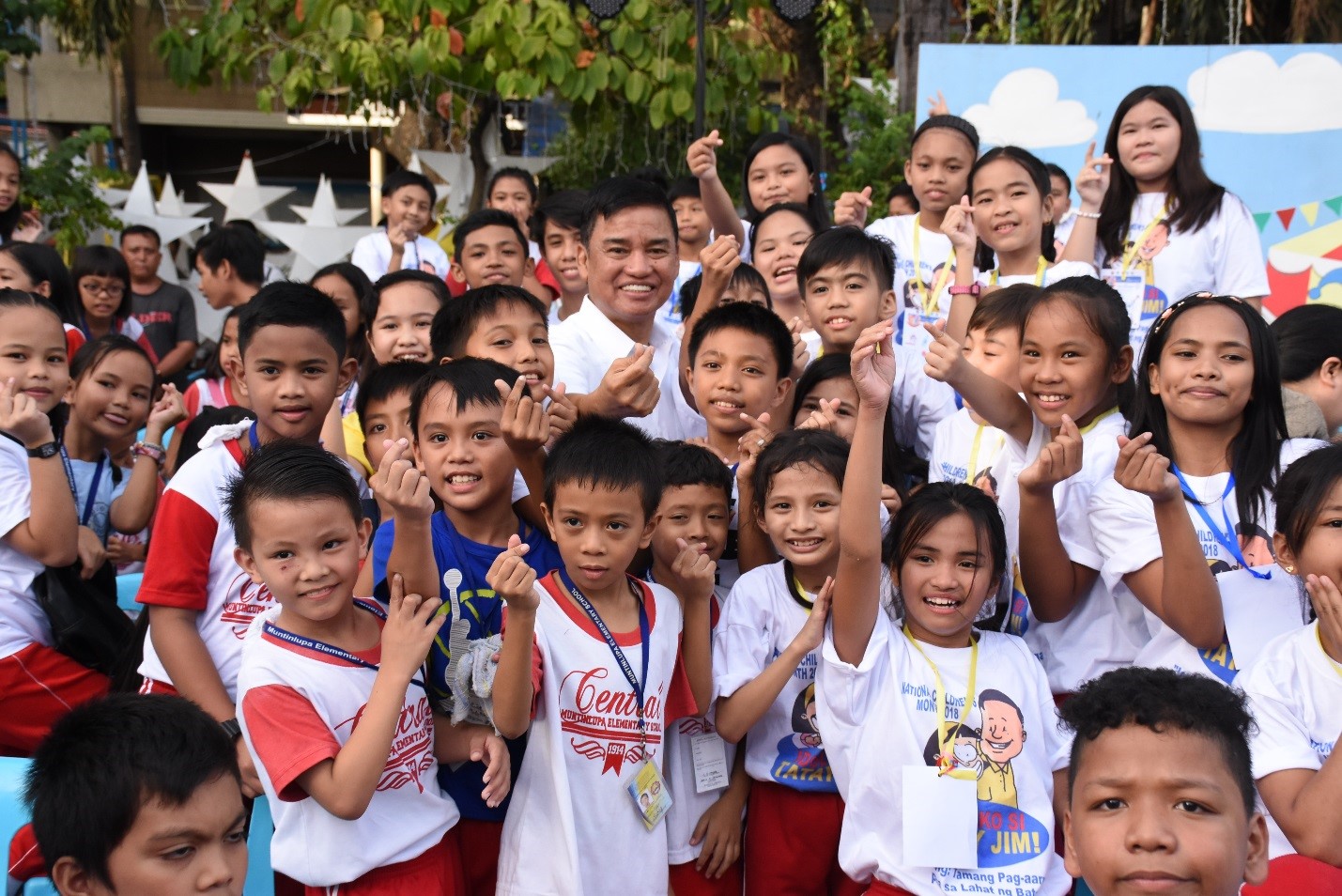 Muntinlupa Mayor Jaime Fresnedi poses with students in the conduct of the State of the Children’s Address on November 16 at Muntinlupa City Hall Quadrangle, Putatan. Fresnedi reported significant improvement in health metrics with having below 1% malnutrition in Muntinlupa, growing number of scholars to over 48,000 beneficiaries, zero cases on child labor, and strengthening of child participation in local governance, among others. 800 students enjoyed a carnival-theme party in the event and received different goods. Muntinlupa City has been adjudged the Most Child-Friendly City on 2017 and the region’s contender for last year’s Presidential Child-Friendly City Awards.