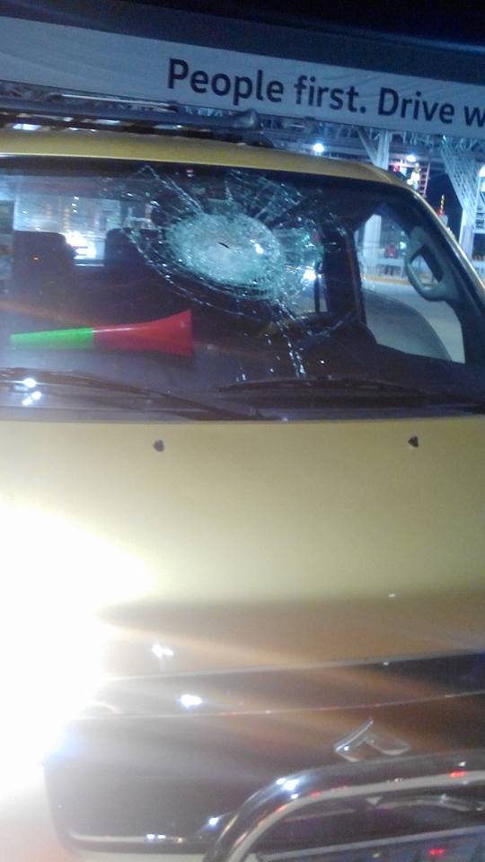 We are also sharing this so that the mcx authorities spend more resources in safe guarding the cars that pass through mcx since the expressway passes through an area that is part muntinlupa correctional facility and a “squatter area”… Hopefully their management puts more effort in keeping us motorists safe from such accidents… Below are the pictures of our car and several cars that were hit in a span of 30 minutes… One car even got hit in the windshield and wounded the driver… Most of the cars hit had families and kids inside them… So extra caution to motorists that use mcx…and share so that people know…