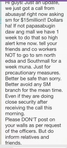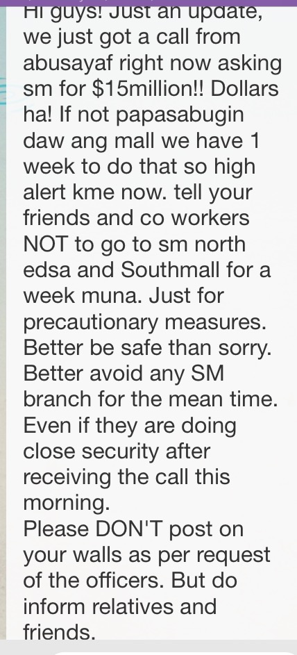 Whether true or not, let us all just be careful. In Southmall or anywhere we go.