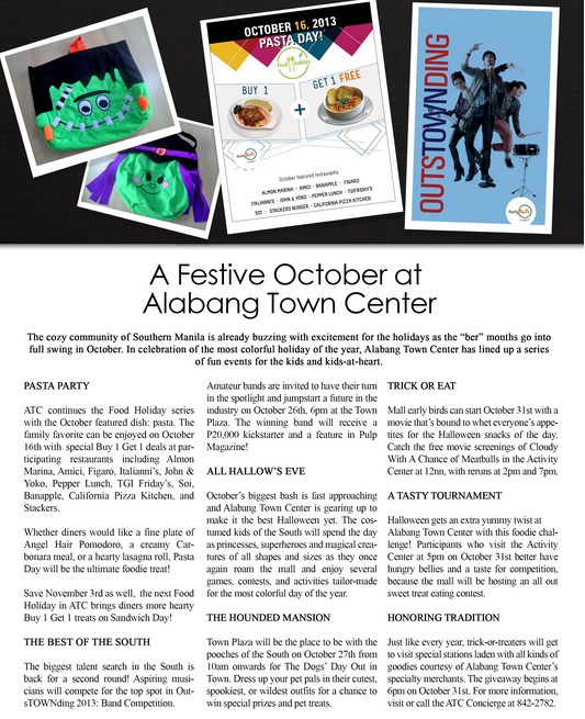 Celebrate October in ATC! Trick or Eat, a Pasta Party and a whole lot more! by AlabangBulletin · October 10, 2013
