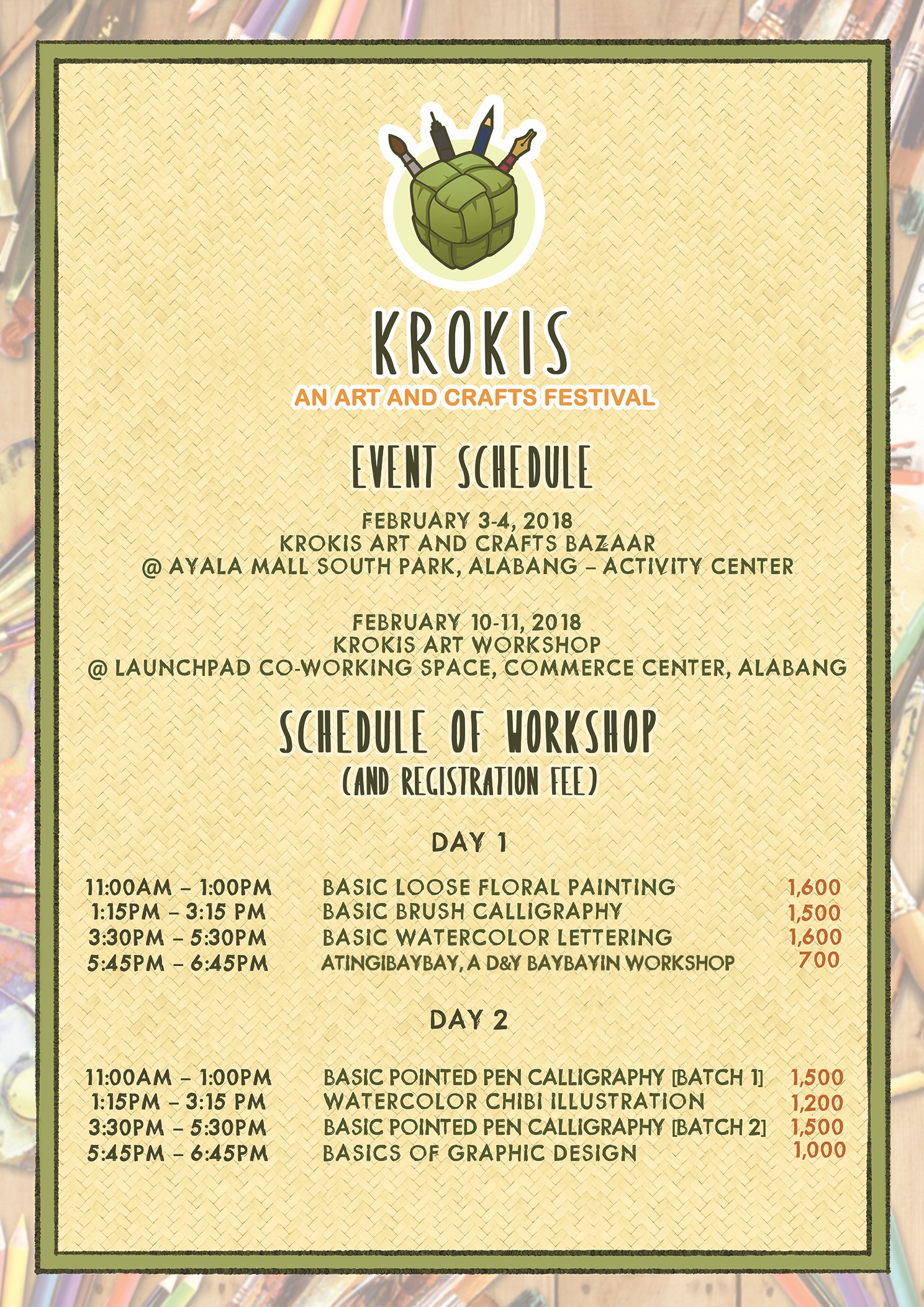 KROKIS: An Art and Crafts Festival is a new art and crafts events you will be looking forward every year starting this 2018. This year’s Krokis will feature an art and crafts bazaar you can visit at the Ayala Mall South Park, Alabang on February 3-4. Drop by the bazaar and check out some pop culture art work and handmade crafts from the participating exhibitors. Some of the exhibitors will also be selling merchandises such as stickers, cards and more which you can purchase and give as gifts for the upcoming Valentine’s Day.