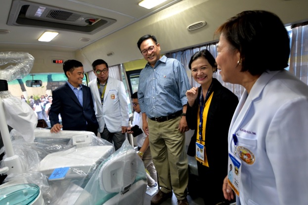 Local government officials inspect a dental van donated by the Deparment of Health, through the initiative of Congressman Ruffy Biazon (center), to be given to Muntinlupa City Health Office on March 5. Mayor Jaime Fresnedi (left) expressed his thanks to the agency and said the van will improve delivery of health services for Muntinlupeños. Also shown in the photo: (L-R) CHO assistant head Dr. Juancho Bunyi, CHO chief Dra. Teresa Tuliao, and CHO dental department head Dra. Elsa Olea.
