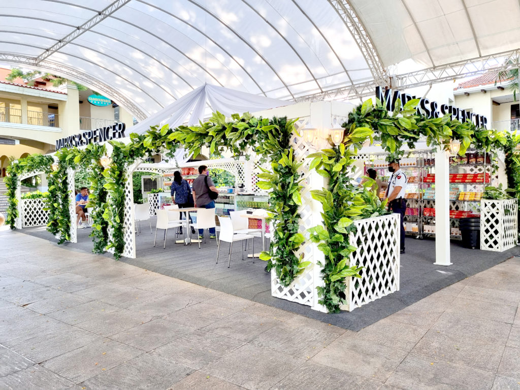 The quaint IG-worthy pop-up cafe is charmingly designed to give you the UK garden cafe feel with its white wooden lattice structure decorated with foliage. Marks & Spencer’s Pop-Up Cafe has a variety of offerings for pastry connoisseurs including fluffy muffins, doughnuts, scones, croissants, cookies, and shortbread that are served in a pastry bag- taking you to a true Euro outdoor dining experience.