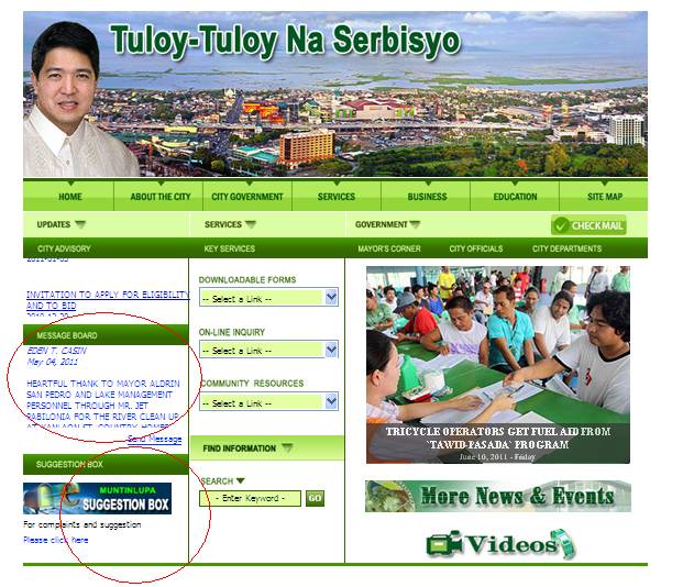 Here is an image of the message board and/or suggestion box that Muntinlupenos or other concerned citizens can use to air their concerns/complaints/suggestions/praises/gratitude/etc.: