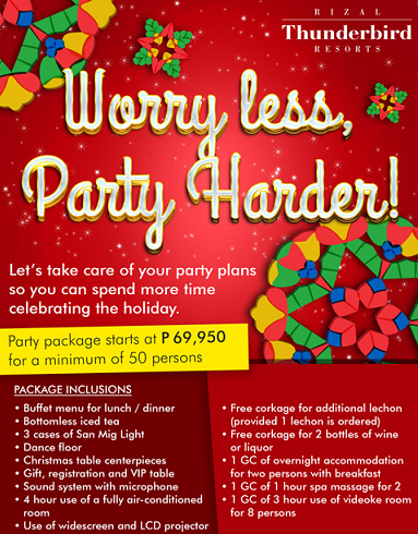 Hold your Christmas parties/gatherings at Thunderbird Resorts in Rizal and Poro Point! by AlabangBulletin · December 3, 2013