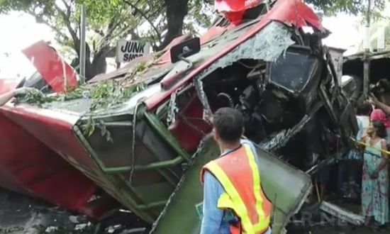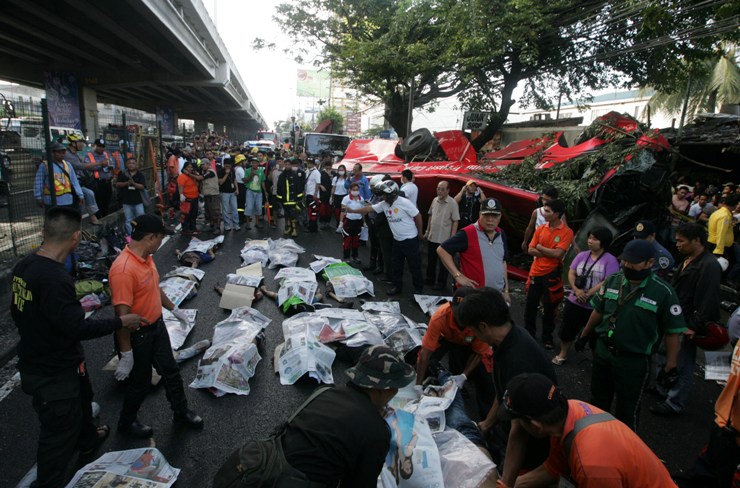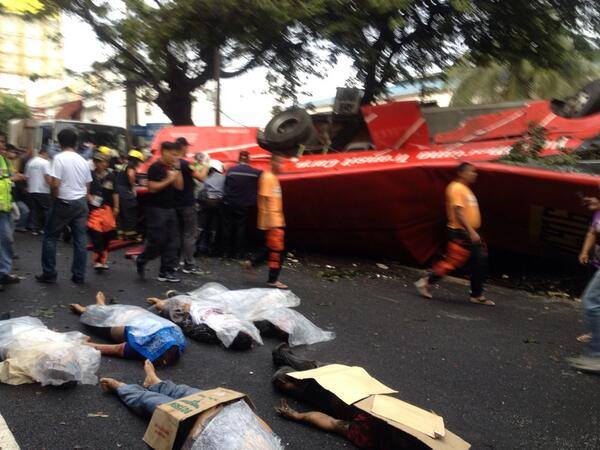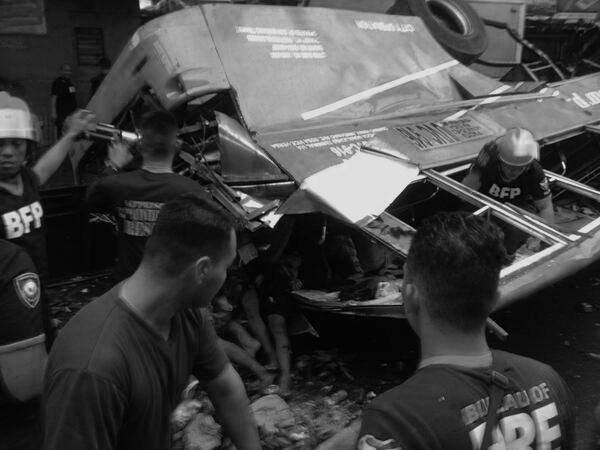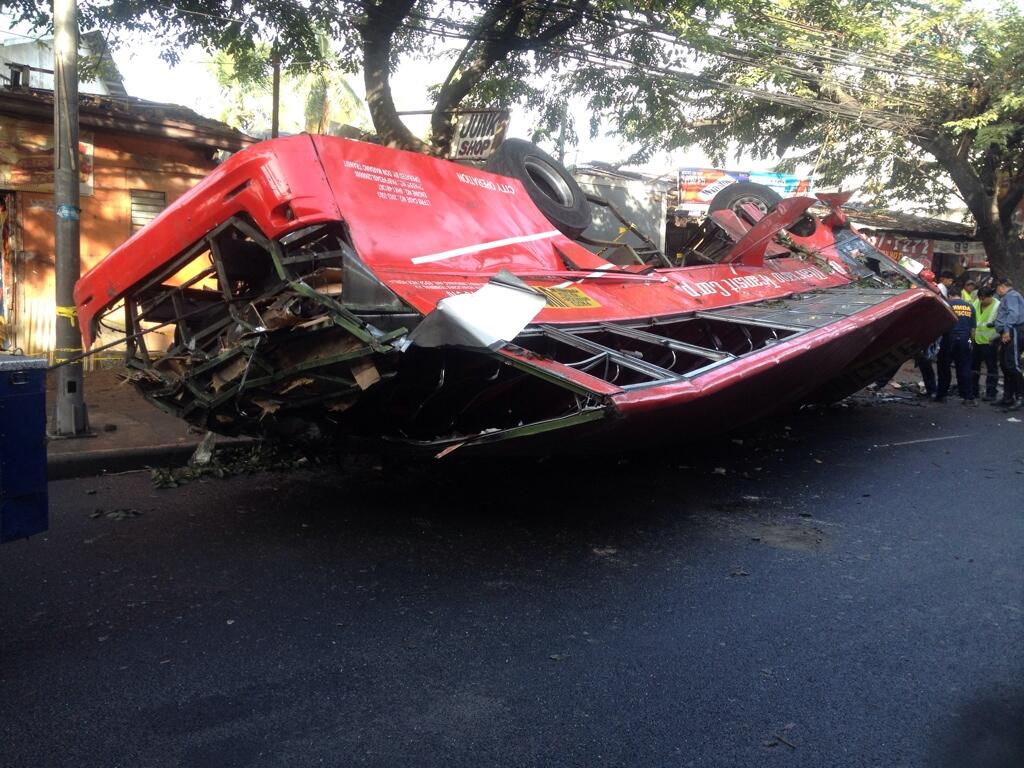 Images of bus that fell from Skyway this morning (Warning: Some pics are a bit too graphic) by AlabangBulletin · December 16, 2013 Photos from DZMM Radyo Patrol Dennis Datu (@dennis_datu) Photo by Michael Varcas (from Manila Bulletin) Photos by JM Lago (Solar News) Photo by EPA/Francis Malasig (from Rappler.com)