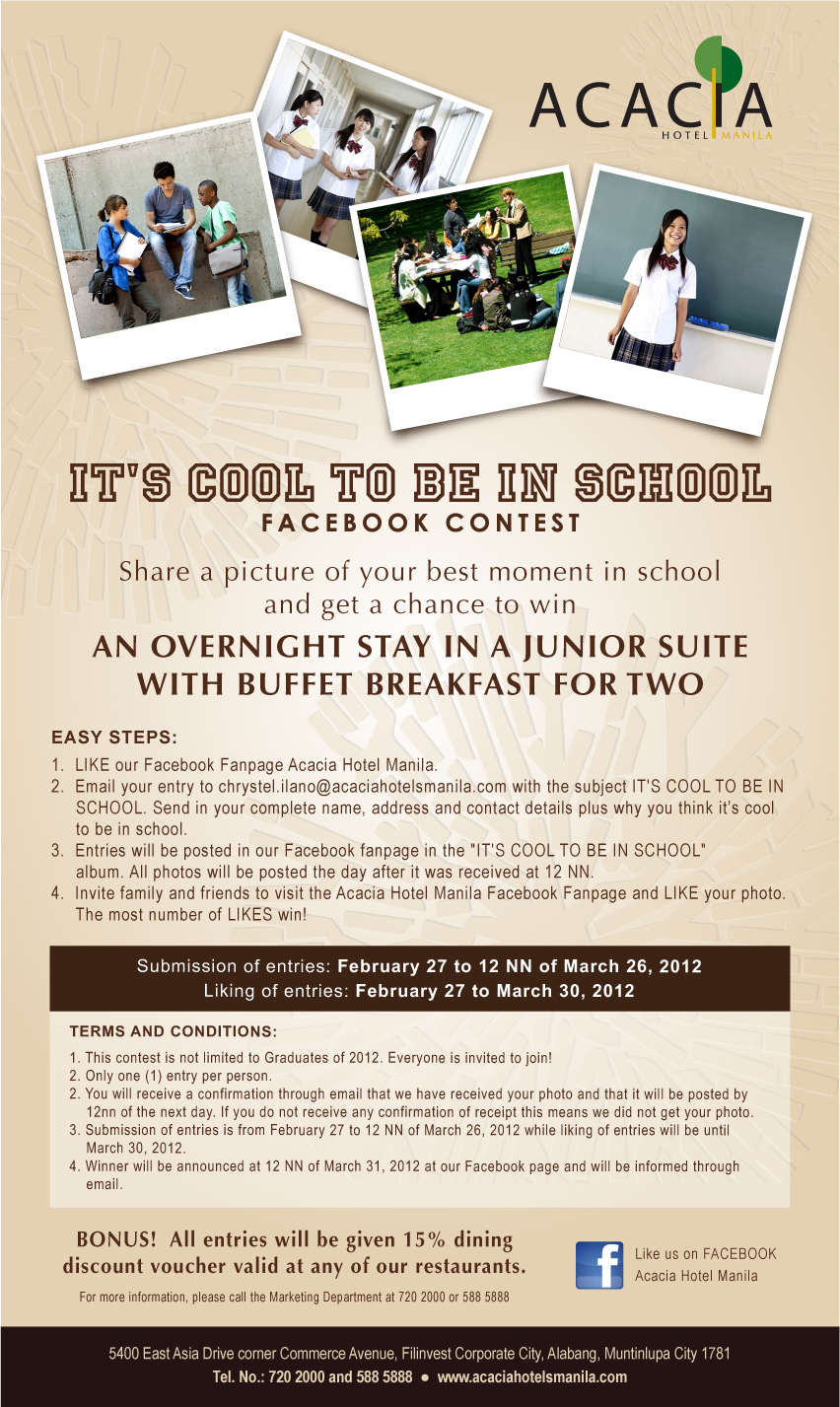 Join ACACIA Hotel’s Facebook Contest and get a chance to win an overnight stay! by AlabangBulletin · February 28, 2012