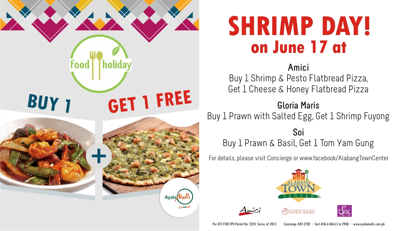 June 17 is Shrimp Day in Alabang Town Center! Buy 1, Take 1 on Shrimp dishes! by AlabangBulletin · Published June 14, 2015 · Updated June 11, 2015