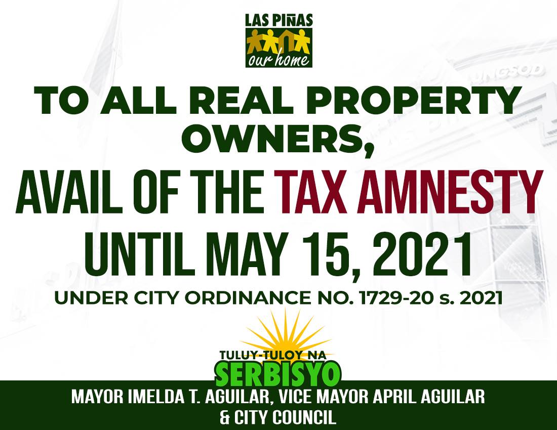 Las Piñas City Mayor Imelda Aguilar called on property owners with unpaid obligations on their real property taxes to avail of the tax amnesty being offered by the city government until May 15.