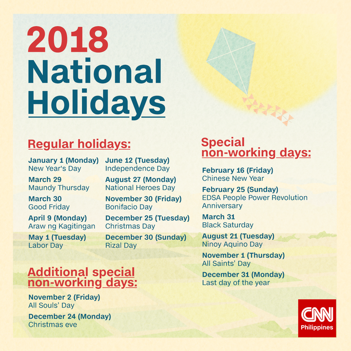 President Rodrigo Duterte has just signed Proclamation 269 declaring the holidays for next year.