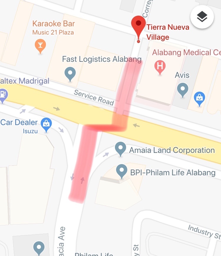 Kindly respond for my reference should i need it: crossing alabang zapote road from alabang hills to aava (bec there is a short distance to be ON Alabang Zapote before being able to turn left to Acacia or right to Madrigal