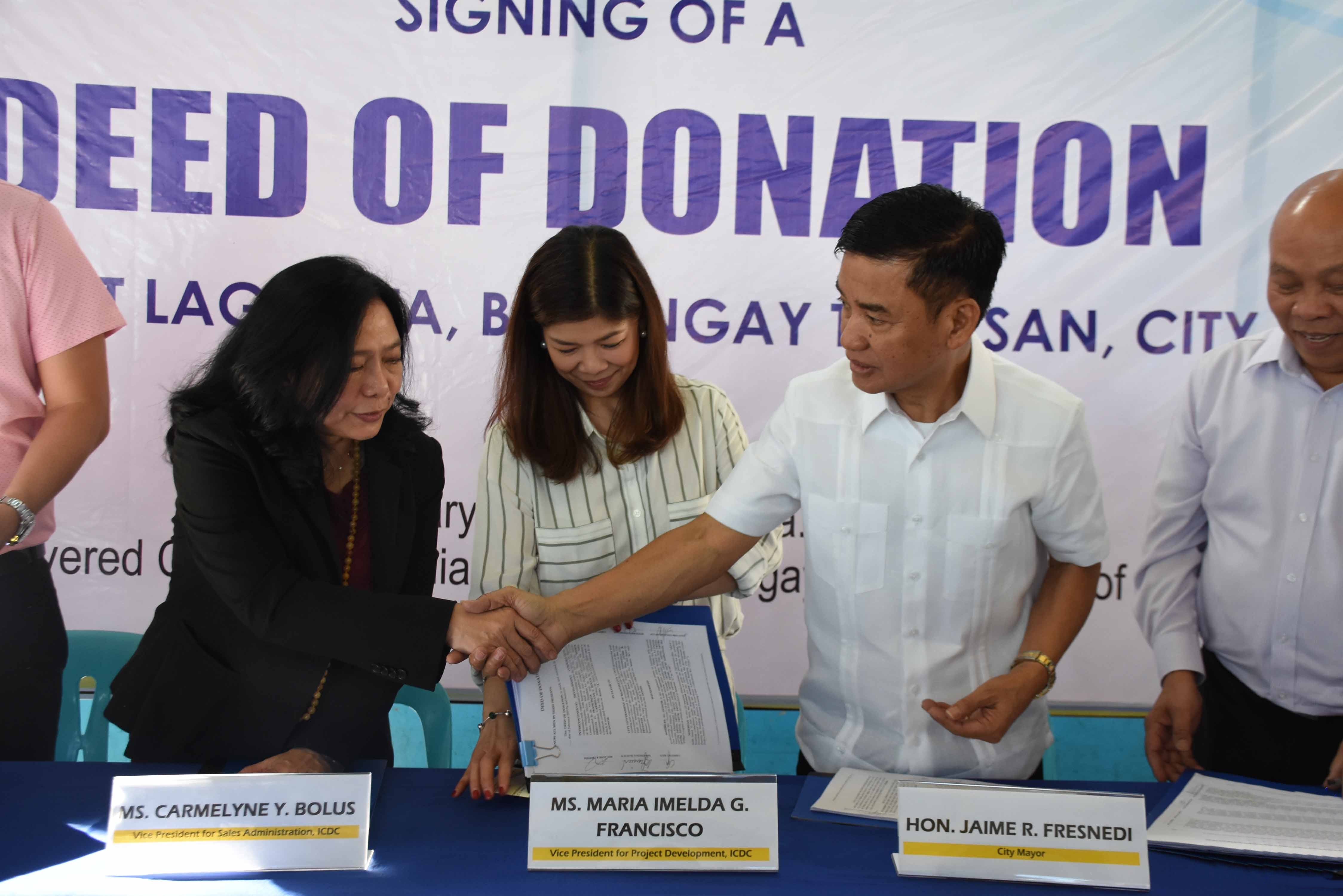 The Intercontinental Development Corporation donates 3.6 hectares of land in Laguerta, Brgy. Tunasan to the City Government of Muntinlupa on February 20. Attending the signing of deed of donation are Mayor Jaime Fresnedi, Coun. Lester Baes, ICDC VP for Project Development Maria Imelda Francisco, ICDC VP for Sales Administration Carmelyne Bolus, and other local execs. Fresnedi extended his utmost thanks to ICDC and members of the Madrigal family for donating the 19 parcels of land which will soon be the site of other government projects. Formerly gaining an infamous reputation, Laguerta has transformed into a progressive government complex, now dubbed as Centennial Avenue, with a health center, child development center, secondary school, police station, and home to a thriving community.