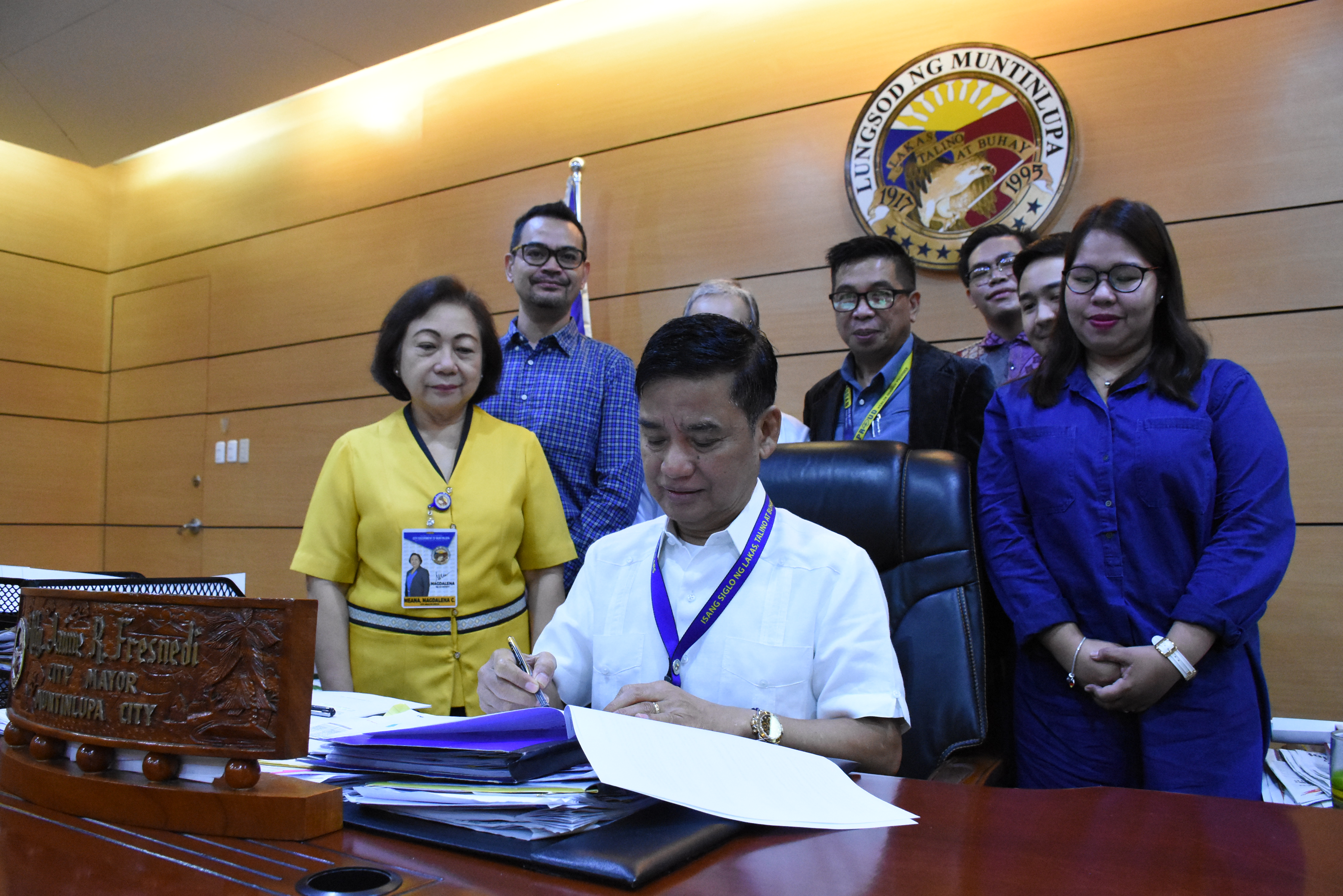 Muntinlupa Mayor Jaime Fresnedi signs a declaration of support to reduce HIV infections and AIDS-related deaths with the Joint United Nations Programme on HIV/AIDS on October 3. Muntinlupa LGU supports the UNAIDS advocacy to expand the on-going work on Fast Track Cities to End AIDS and accelerating local AIDS responses. The City of Muntinlupa is one of the pioneering cities in NCR to join the initiative. The local government of Muntinlupa continuously prevents, monitors, and manages cases of STI, HIV and AIDS through the establishment of Reproductive Health & Wellness Center Room 101 to be a venue for STI/HIV/AIDS counselling and testing. Room 101 is located at Sentrong Pangkalusugan I (Putatan Health Center), Brgy. Putatan.