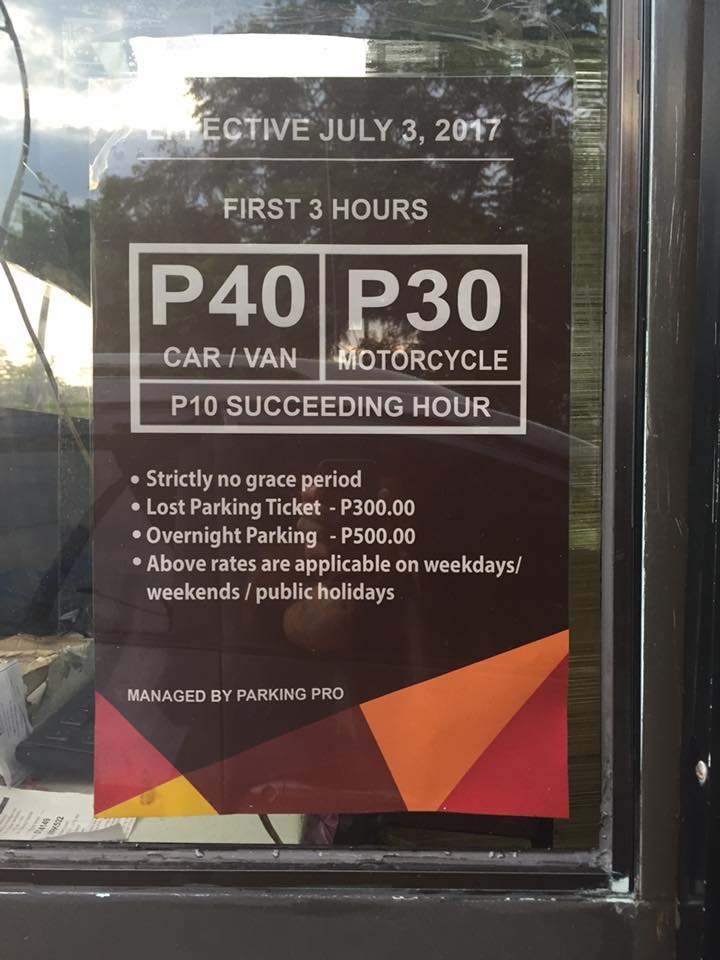 New parking rate table in Westgate and Filinvest causing confusion among motorists