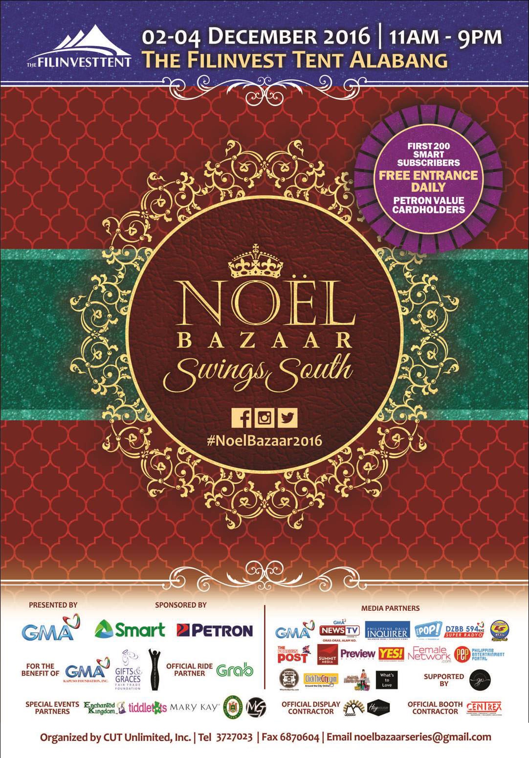 The Noel Bazaar Series 2016 is organized in partnership with Smart Communications, Inc. and Petron Corporation and in cooperation with theGMA Network and the Philippine Daily Inquirer.