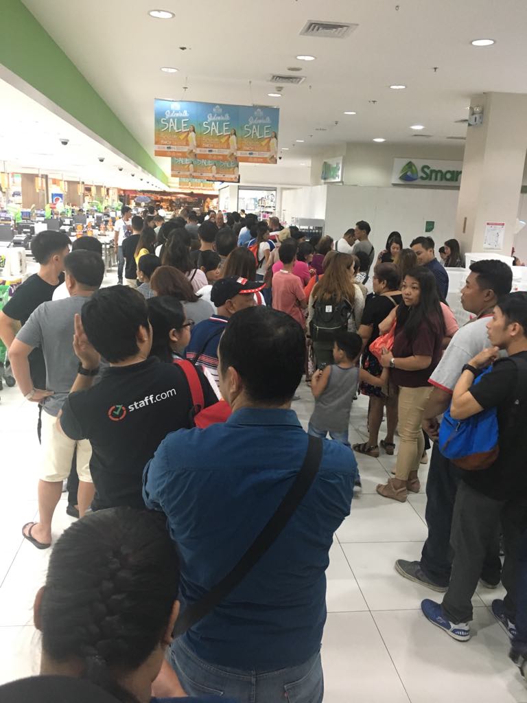 The guard starts to let people inside the mall at exactly 9am. You go through the grocery store and form another set of lines past the grocery payment counter.