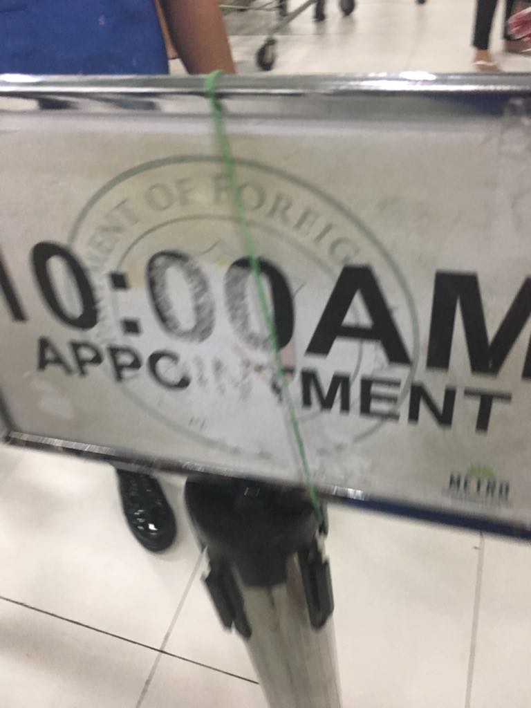 First, the verification counter will check if you really have an appointment then they will point you to the processing area where they will receive and check all your requirements.