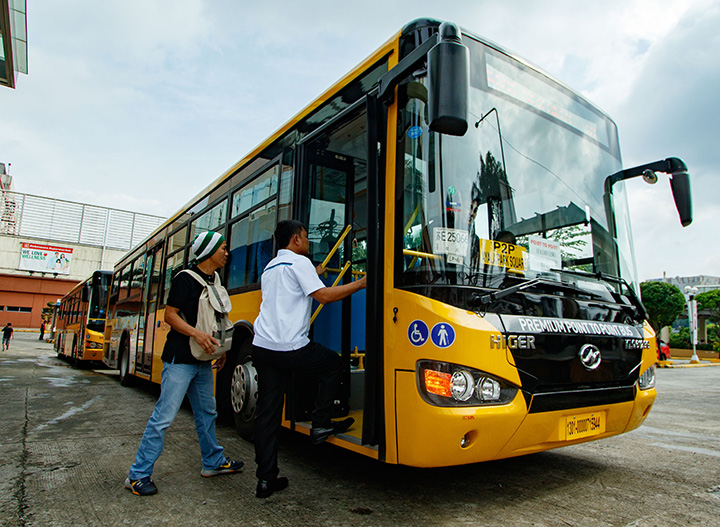 P2P NOVA/30AUG2016 Passengers board the newly-launched Point to Point bus service from Robinson’s Novaliches, Quezon City, to Ayala Ave. in Makati. The service is the latest addition to the DOTC’s P2P bus project, which began last year with a TriNoMa-Glorietta service. MB PHOTO/FEDERICO CRUZ