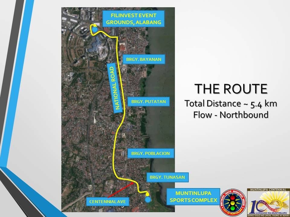 It will start at the Muntinlupa Sports Center in Tunasan and will end at the Filinvest City Events Grounds in Alabang.