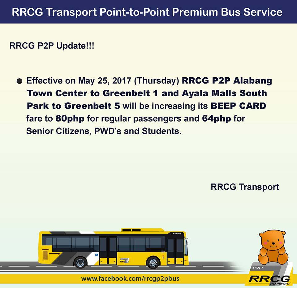 RRCG P2P Bus from Alabang to Makati trip and vice versa announces fare increase