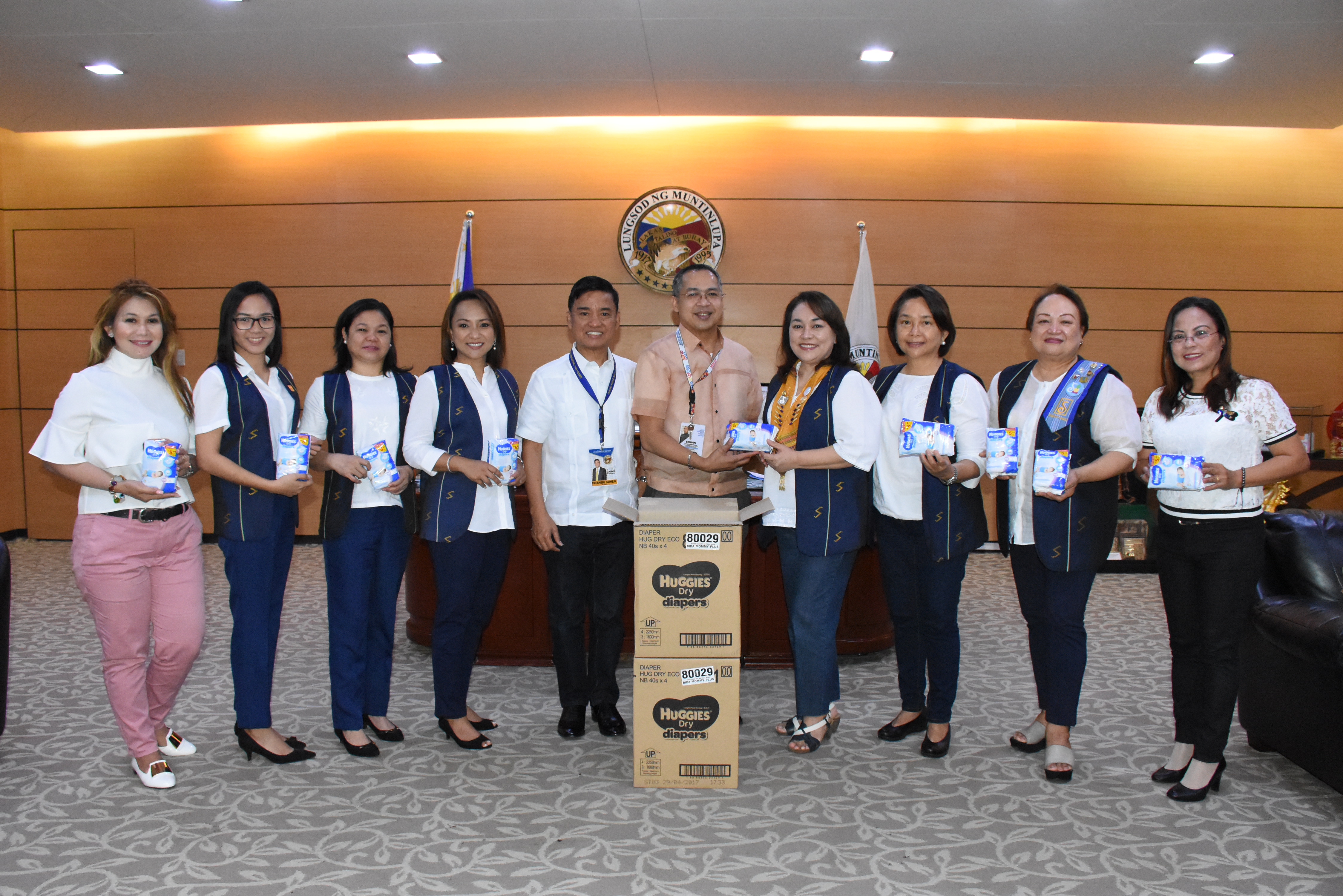 Soroptimist International of Alabang, a global non-governmental organization empowering women and children through anti-poverty interventions, donates 5,000 baby diapers to Ospital ng Muntinlupa (OSMUNA) last July 5. OSMUN director Dr. Edwin Dimatatac and Muntinlupa Mayor Jaime Fresnedi receive the items during the organization’s courtesy call to the local exec at Muntinlupa City Hall, Putatan. Fresnedi extends his gratitude to Soroptimist International of Alabang and other NGOs and civic groups for partnering with the local government in championing inclusive development.