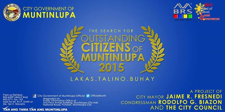 The search for Outstanding Citizens of Muntinlupa 2015 is now on! by AlabangBulletin · October 12, 2015