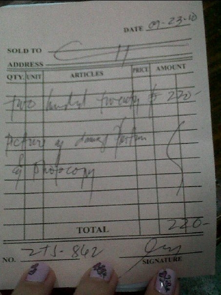 This is how much a Police Report costs by AlabangBulletin · September 25, 2010 What a very expensive photocopy and picture! This was in a police precinct after she filed a police report after getting in to an accident.
