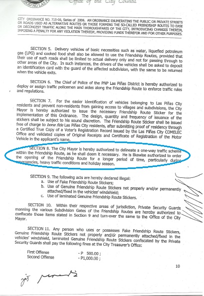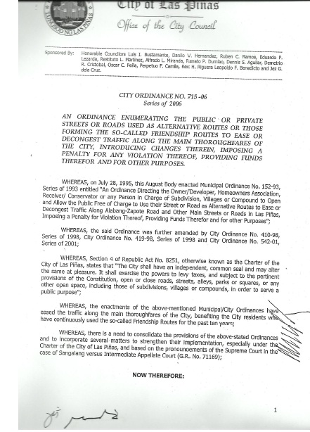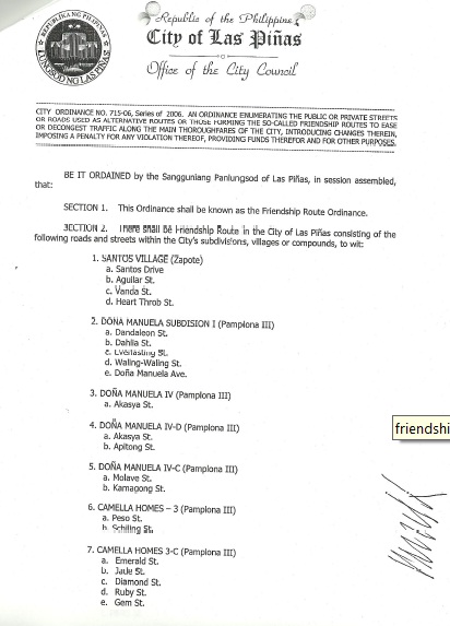 The Las Pinas City Hall recently posted the ordinance creating the Friendship Route on its website.