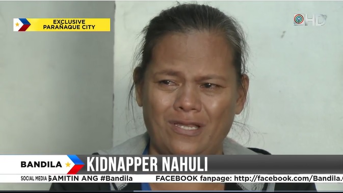Suspect Lilibeth Bustamante explaining why she tried to kidnap the child. (Screen grab from abs-cbn)