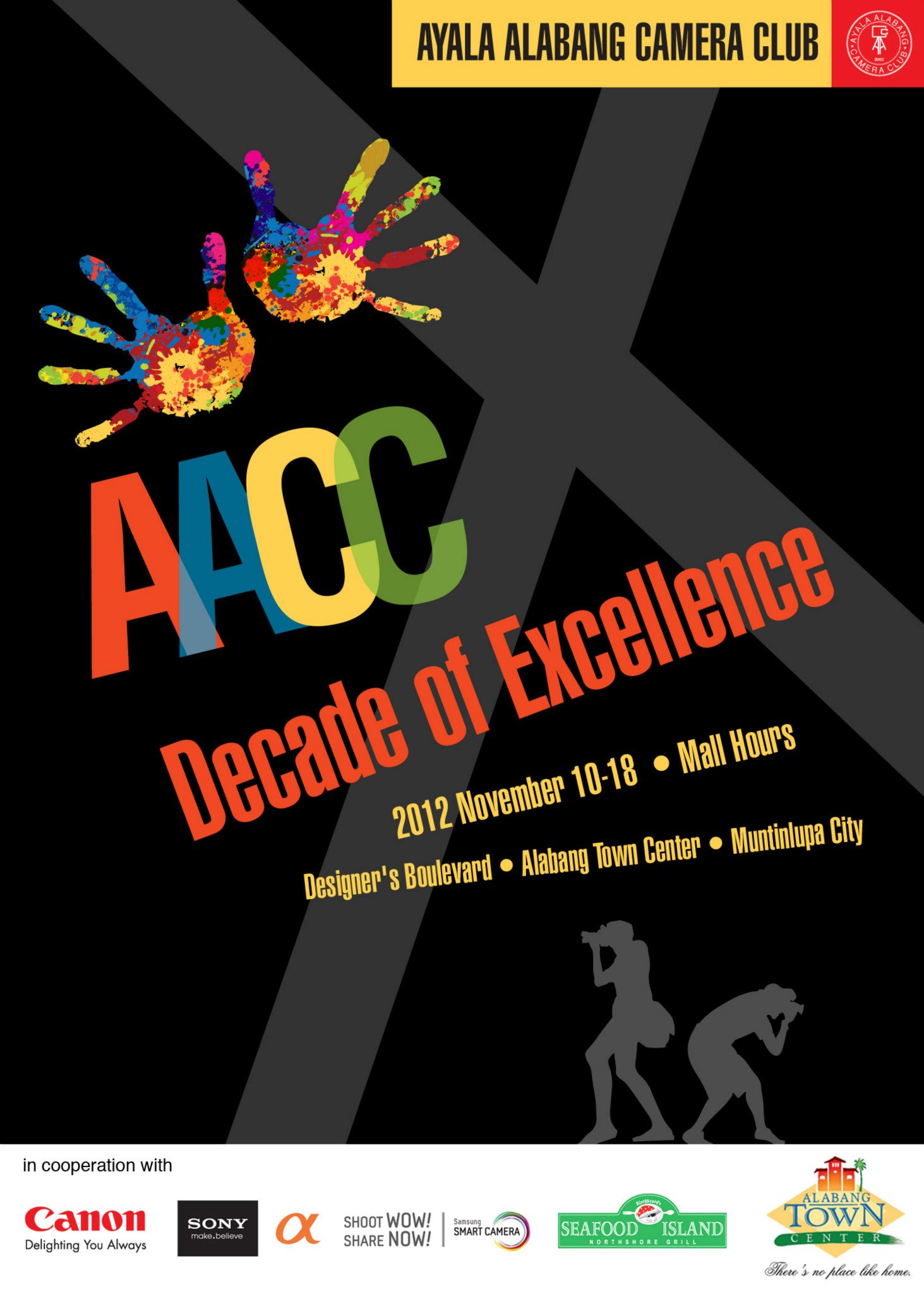 The Ayala Alabang Camera Club (AACC) proudly celebrates ten glorious years of existence! To commemorate the celebration, AACC presents “A Decade of Excellence,” a photo exhibit from November 10 to 18, 2012 at the Designer’s Boulevard of Alabang Town Center, Muntinlupa City. Special guests will lead the ribbon cutting and opening program at 6PM on its first day.